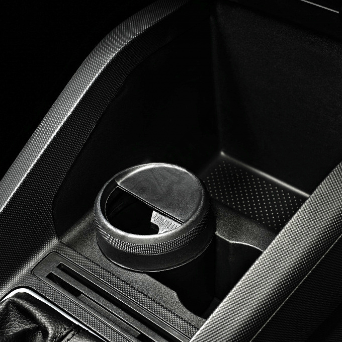 Praktický popelník do držáku nápojů z nabídky ŠKODA Originální příslušenství, který svým decentním tvarem nijak nenarušuje design interiéru vozu,je tak pro tyto řidiče určitě tou správnou volbou. Popelník je vyroben z nehořlavého plastu, takže maximálně splňuje bezpečnostní normy. V interiéru vozu se popelník vloží do držáku nápojů v panelu střední konzoly. Lze jej kdykoliv jednoduše vyjmout, vyčistit a znovu použít. Používáním popelníku si zajistíte čistotu v interiéru vozu.