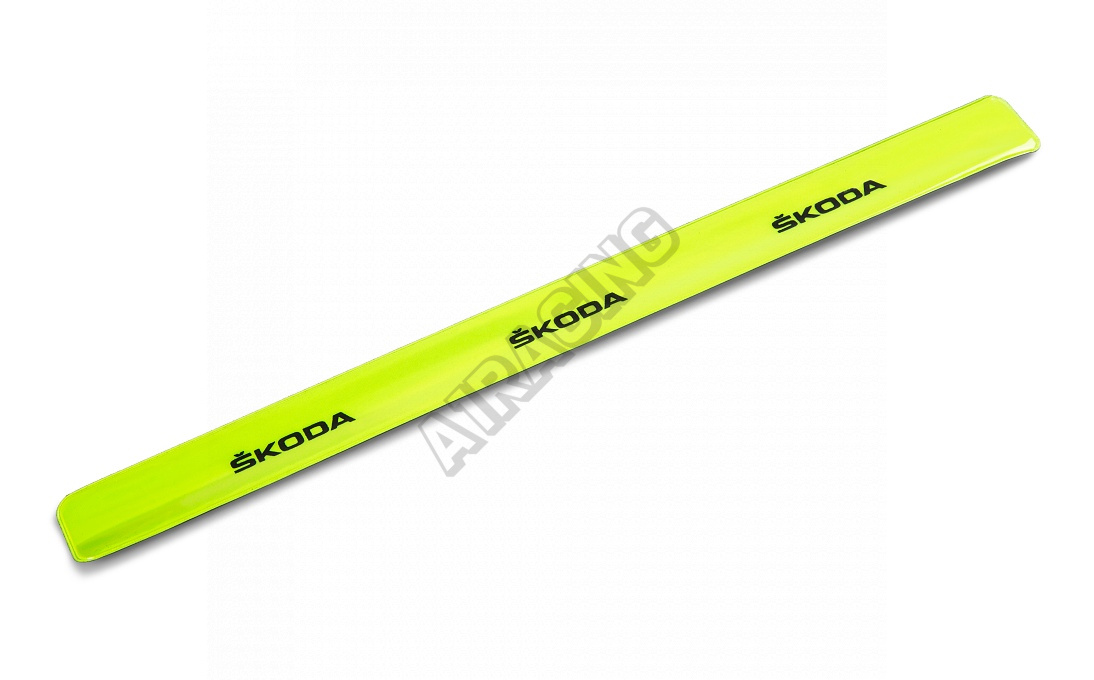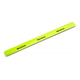 Samonavíjecí žlutá reflexní páska výrazně zvyšuje viditelnost v silničním provozu. Reflexní materiál je vidět na 10x větší vzdálenost. Páska je potištěna logem ŠKODA, na spodní straně je příjemný semiš.