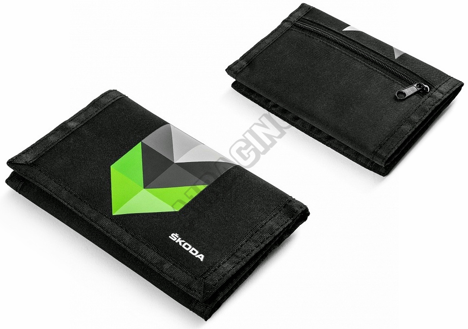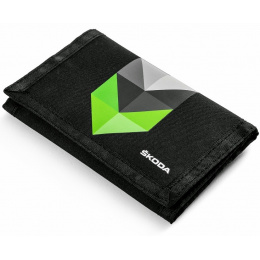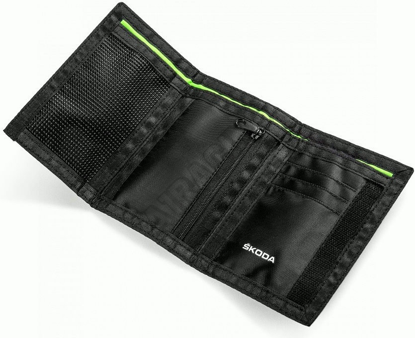Velmi praktická měkká látková sportovní peněženka ve ŠKODA designu se zapínáním na suchý zip. Peněženka obsahuje okénko na doklady, přihrádky na karty a na bankovky a dvě kapsičky se zipem na mince. Svým obdélníkovým tvarem rozhodně je lépe nositelná v oblečení než bytelné většinou čtvercové peněženky.
