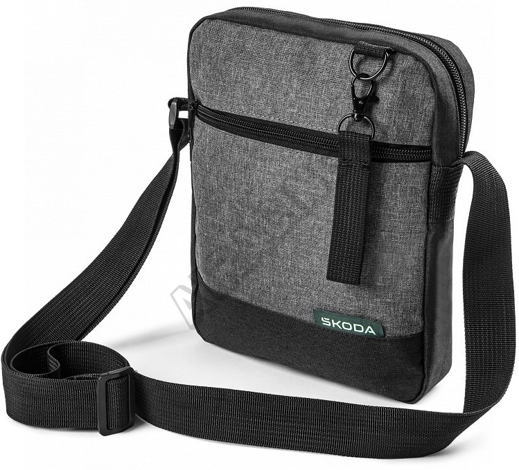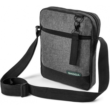 Originální doplněk Škoda Auto. Unisex taška přes rameno. Taška je vyrobena z recyklovaného materiálu RPET, je voděodolná. Hlavní kapsa na zip, uvnitř malá kapsička na telefon. Boční kapsa na přední straně na zip. Je zde očko s přívěskem na klíče s karabinou. Ve spodní části malý štítek s logem Škoda. Nastavitelný ramenní popruh 150 x 2,8 cm, vyrobený z nylonu.