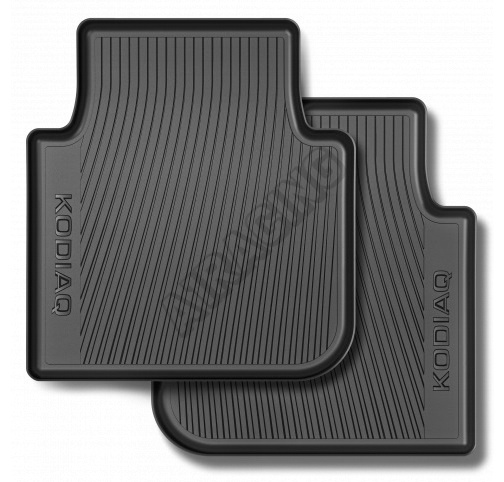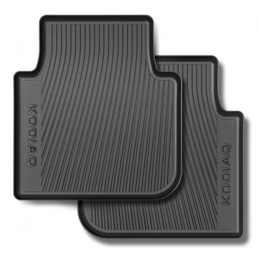 Originál zadní celoroční koberce Škoda Kodiaq vhodné hlavně při nepříznivém počasí. Přesně kopírují tvar. Zvýšený okraj. Upevnění pomocí nacvaknutí na čepy umístěné v podlaze vozu.