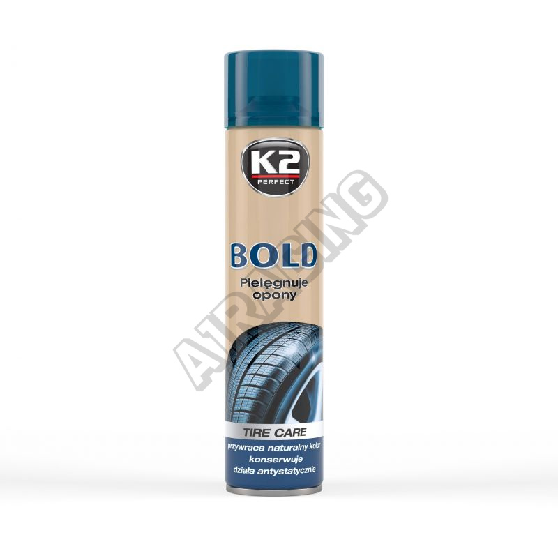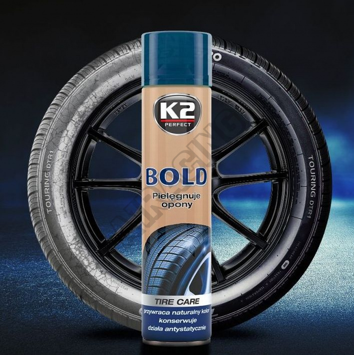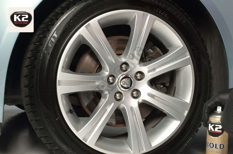 Chrání před znečištěním silnic a UV zářením. Díky vysoké odpuzování vody zabraňuje opětovnému usazování nečistot. Po použití K2 BOLD zůstanou pneumatiky po dlouhou dobu lesklé.