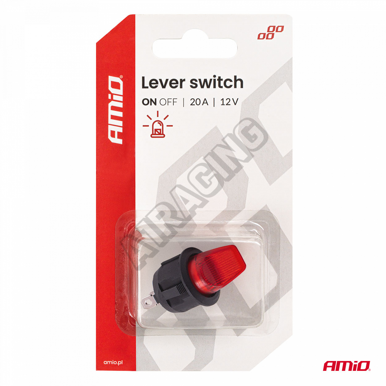 Páčkový spínač s červeným podsvícením 20A 12V AMIO-04438