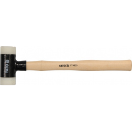 Šetrné kladivo s úderovými hlavami z gumy.Dvoudílné těleso z ocelové litiny, s úderovými hlavami a d