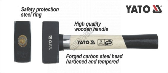 Kvalitní kovová palička Yato o hmotnosti 2000 gramů s dřevěnou násadou . • kovová palice hmotnost 2