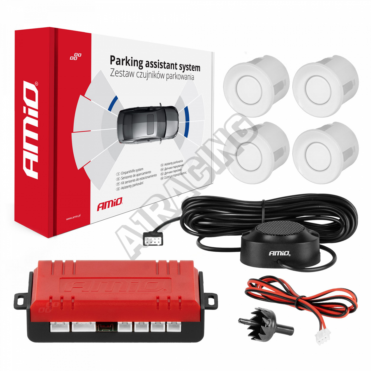 Parkovací systém s akustickou signalizací 4 bílé senzory (vždy možno dokoupit samotné čidlo viz související produkty níže)