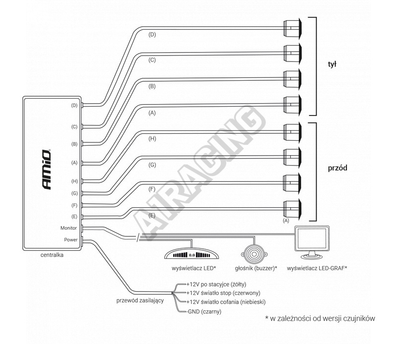 8 řídicí jednotka senzoru (A-D vzadu, E-H vpředu)