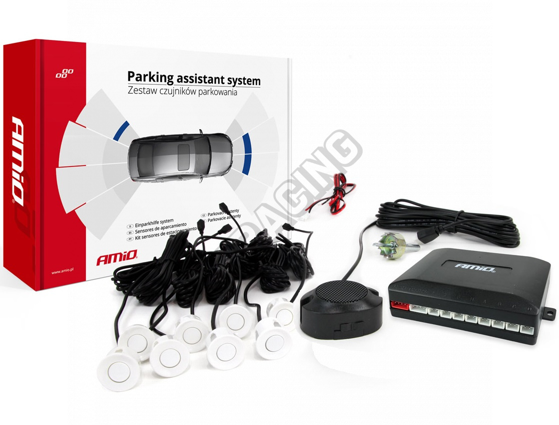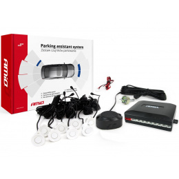 Parkovací systém s led i akustickou signalizací 8 bílých senzorů (předek + zadek)