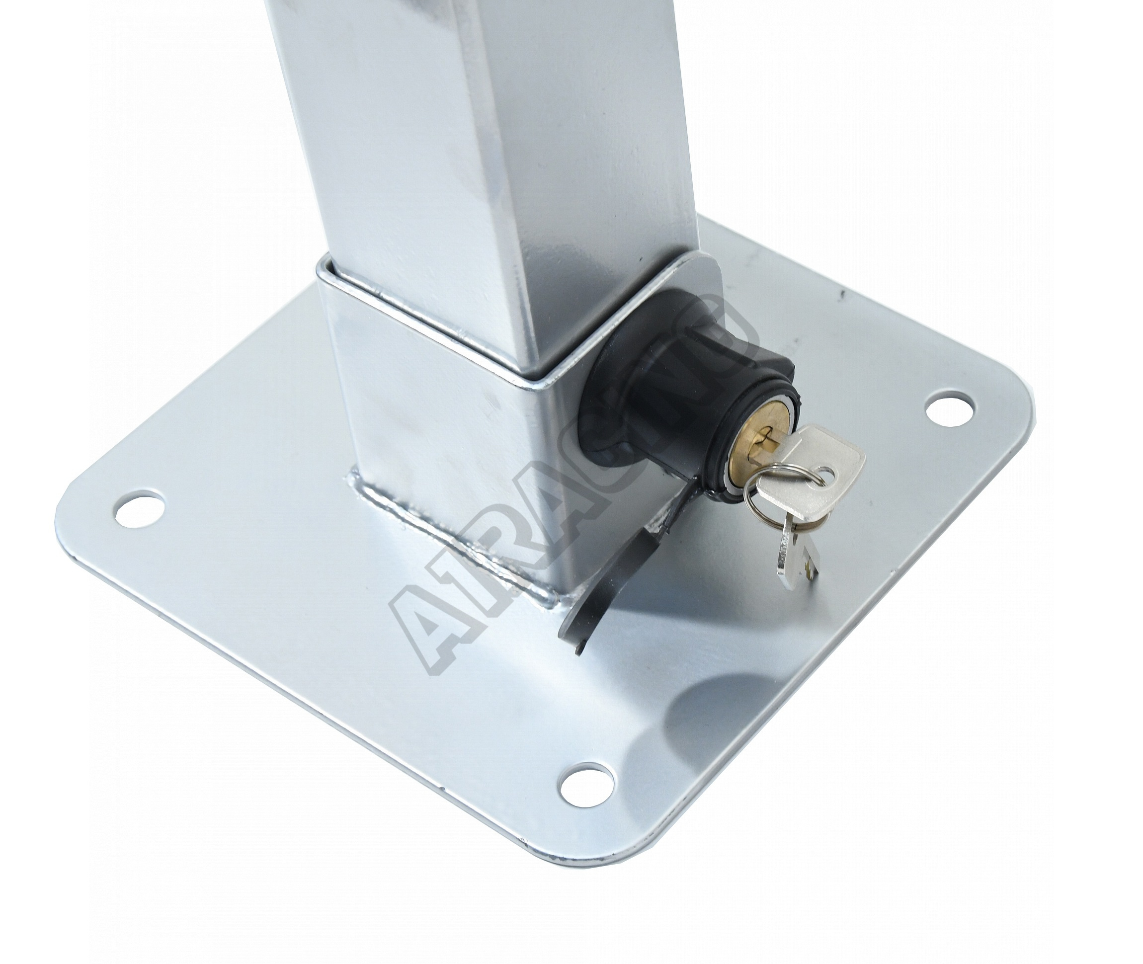 Zábrana je tvořena robustní konstrukcí s povrchovou úpravou vhodnou do venkovních prostor. Zamykání je řešeno zámkem umístěným v základně.