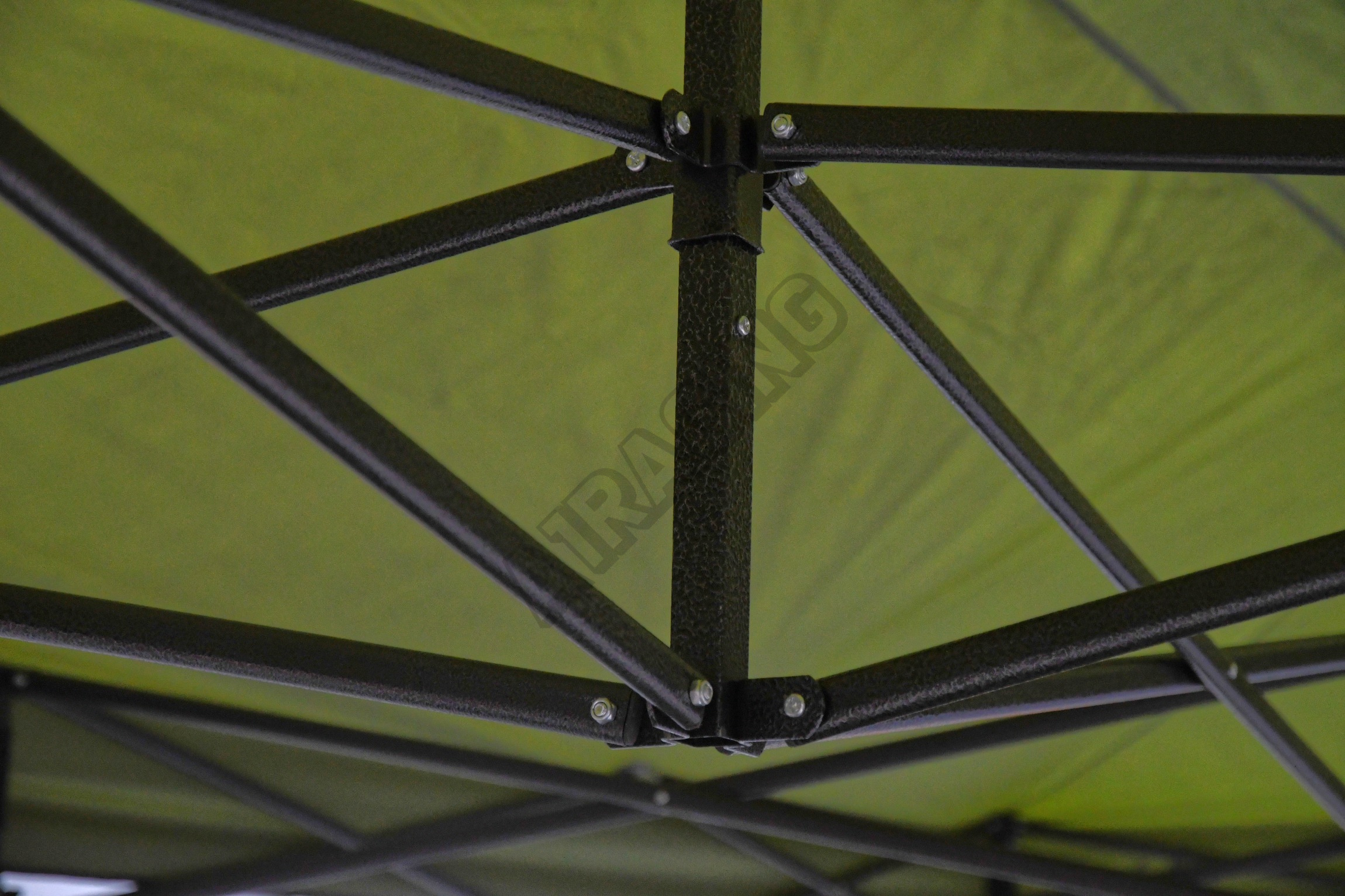 Důmyslná konstrukce stanu z oceli zajistí rychlé sestavení i složení. Nohy konstrukce jsou opatřeny pružnými pojistkami, které zajistí bezpečný a rychlý způsob nastavení vhodné výšky stanu (nastavení výšky 2,5 / 2,4 / 2,3 m). Nohy jsou ve spodní části opatřeny patkou, se dvěma 7 mm otvory pro případné ukotvení (kolíky pro ukotvení nejsou součástí balení).