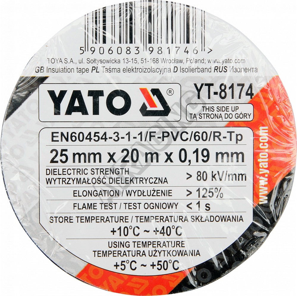 Páska odolává napětí do 8000V (EN60454). Páska černé barvy s návinem 20 m, šíře 25 mm s tloušťkou 0,19 mm.