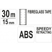 Měřící pásmo o délce 30 m s šířkou 15 mm.
