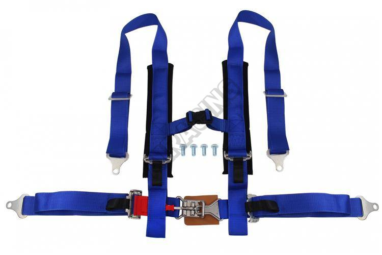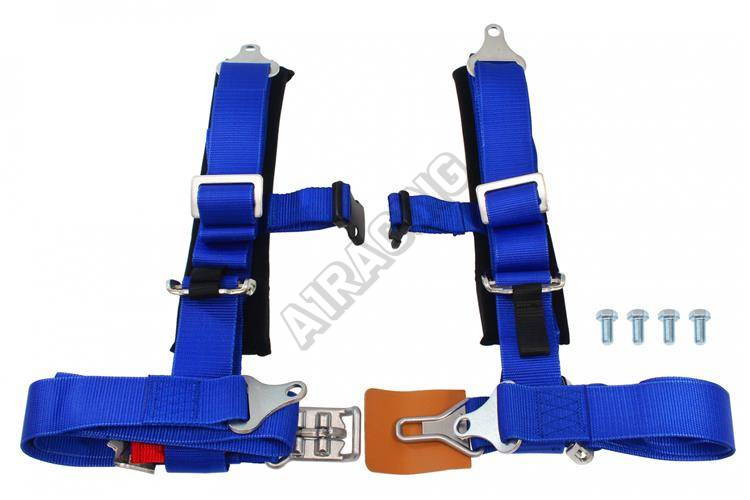 Sportovní bezpečnostní pásy 4-bodové, vyrobené z tkaniny a částečně z plastu.