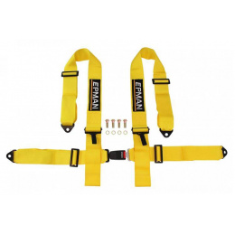 Sportovní bezpečnostní pásy 4-bodové, vyrobené z tkaniny a částečně z plastu.Šířka pásu - 3" Po zapn