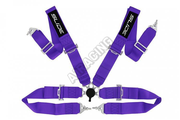 Sportovní bezpečnostní pásy SLIDE 4-bodové, vyrobené z tkaniny a částečně z plastu.