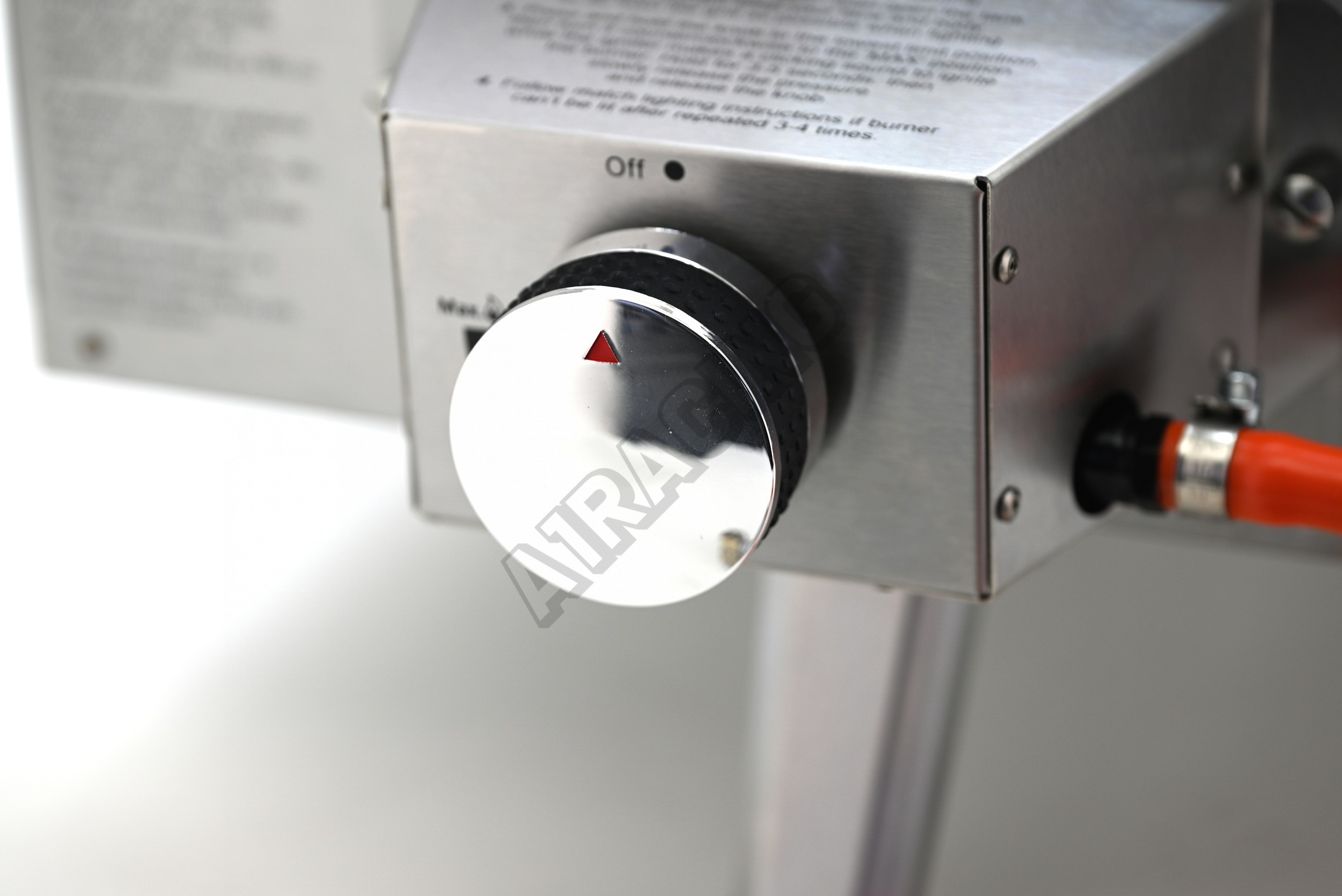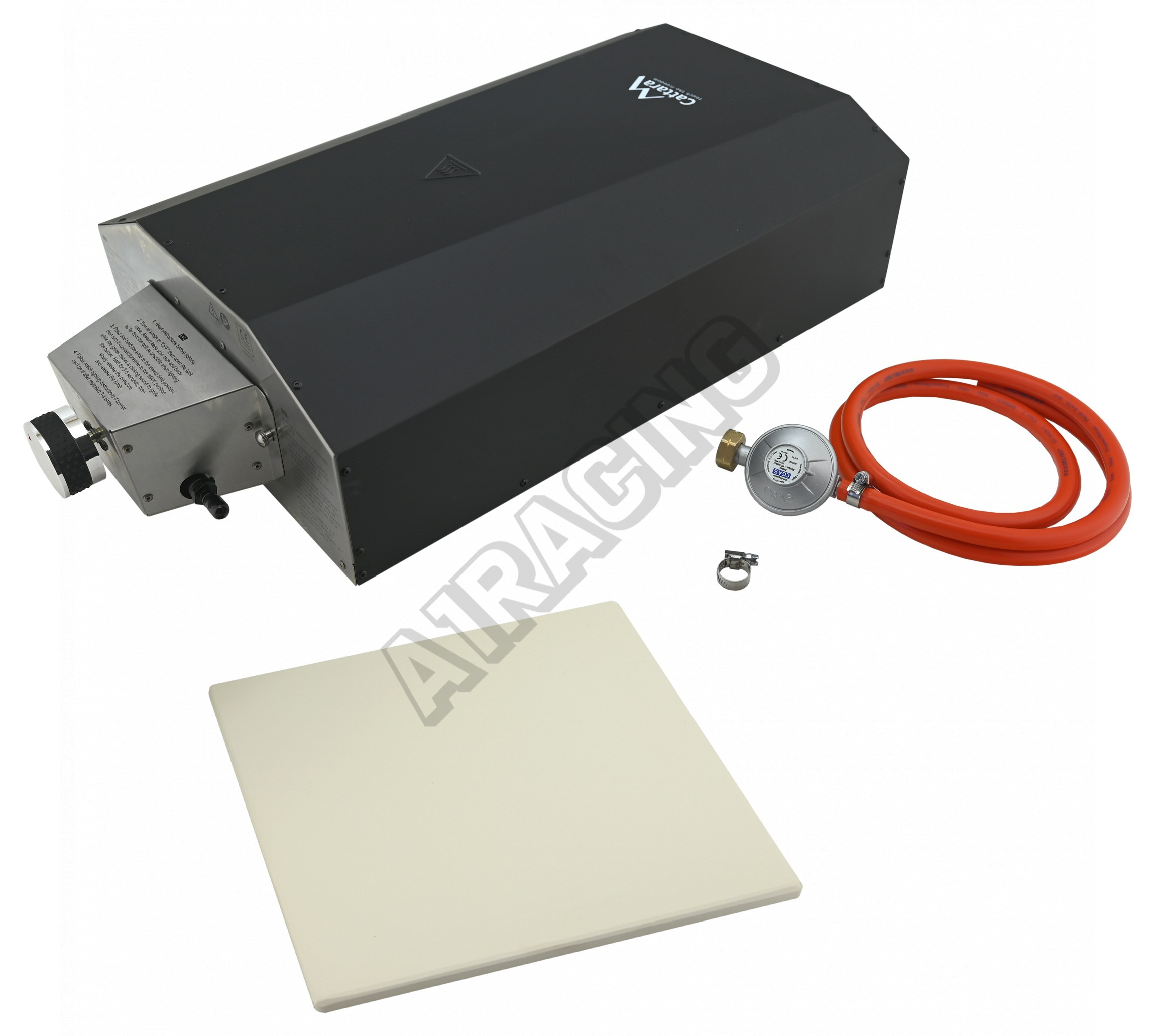 Pec je opatřena plynovým hořákem s vysokým výkonem pro koncentrované a rychlé rozehřátí. Hořák je doplněn piezo zapalováním pro snadné zažehnutí plamene s ovládáním na zadní straně pece. Ovladačem je rovněž možné plynule regulovat výkon.