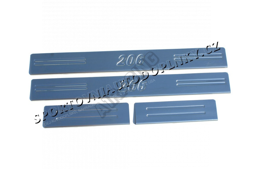 - nerez chrom provedení - cena je za kompletní 4dílnou sadu - prahové lišty mají vylisovaný nápis 206 (nápis není jen vypískovaný, ale vyražený !) - chrání originální prahy a zároveň vylepší vzhled Vašeho Peugeota - jednoduchá instalace pomocí 3M (!!!) pásky (předinstalovaná) - záruka 3 roky (!!!) - super design pro Vaší 206tku