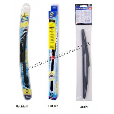 Stěrače FLAT SET (sada 2 ks na celé auto). Vysoce kvalitní pružný člen plochého stěrače zajišťuje stejnoměrný tlak grafitového břitu v celé jeho délce, což zamezuje rozmazávání nečistot a vytváření pruhů.