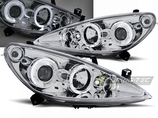 Peugeot 307 04.2001-06.2005 přední čirá světla Angel Eyes chrome (LPPE09)