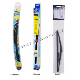 Stěrače FLAT SET (sada 2 ks na celé auto). Vysoce kvalitní pružný člen plochého stěrače zajišťuje stejnoměrný tlak grafitového břitu v celé jeho délce, což zamezuje rozmazávání nečistot a vytváření pruhů.