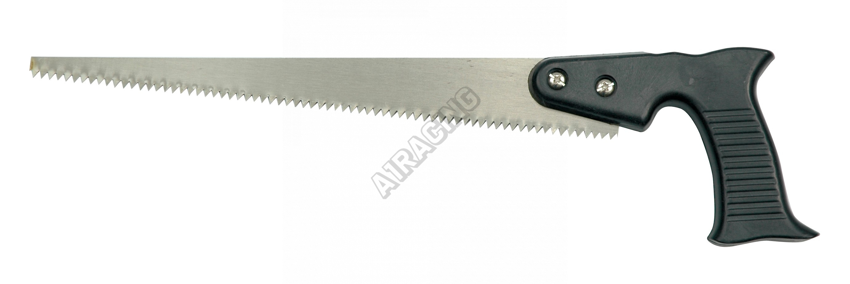 Úzká pila se specifickým tvarem, která umožňuje pohodlné řezání. Rukojeť je vyrobena z tvrdého plast