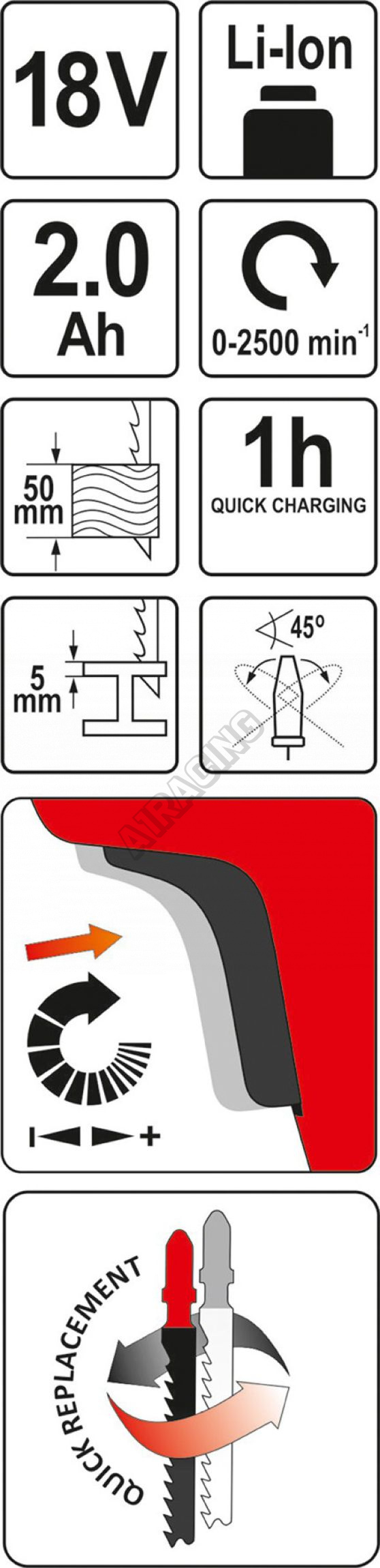 Pila přímočará AKU 18V, Li-ion 2 Ah