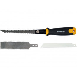 Ruční pila se třemi vyměnitelnými pilovými listy. Pilové listy lze snadno vyměnit bez použití nářadí do dvousložkové rukojeti. Doporučeno pro přesné a modelářské práce.