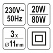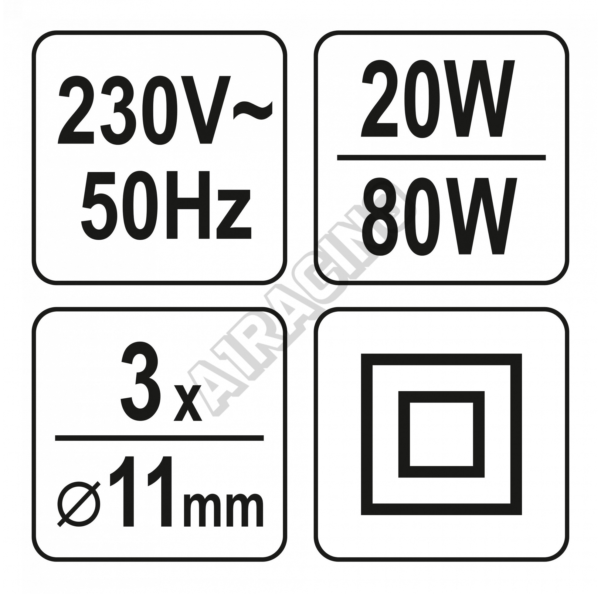 Lepící tavná pistole s výkonem 20/80 W určená k roztavení a nanášení tavného lepidla za účelem rychlého slepení papíru, korku, dřeva, kůže, textilie, umělé hmoty, keramiky atd.