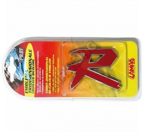 Plastový samolepící emblém R s povrchovou úpravou Chrom 3D. Vysoce kvalitní lepící páska.