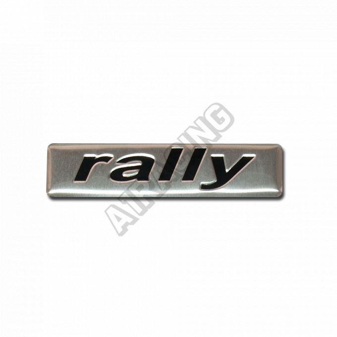 Plastický znak RALLY alu provedení s podlepením 70x17 mm
