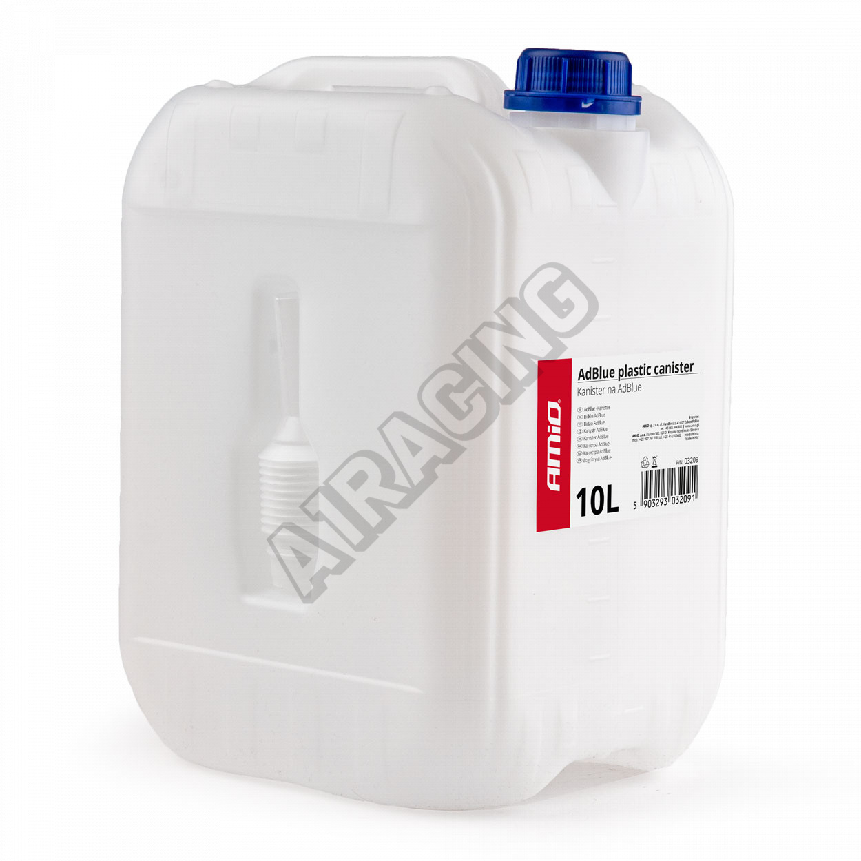 Plastový kanystr vyrobený z nejkvalitnějších materiálů . Vybaven elastickým, roztažitelným ohebným trychtýřem, který zajišťuje těsnost při nalévání a těsným uzávěrem. V kontejneru se nachází výklenek, ve kterém můžeme pohodlně umístit trychtýř. Nádoba vybavená pohodlnou, praktickou rukojetí , která zajistí pohodlný a jistý úchop při přenášení. Vyrobeno z odolného materiálu HDPE odolného vůči povětrnostním podmínkám .