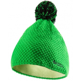 Pletená, zelená zimní čepice (kulich) s černo zelenou bambulí má zelinkavou podšívku a vlevo na boku černou výšivku ŠKODA (5,5 cm).