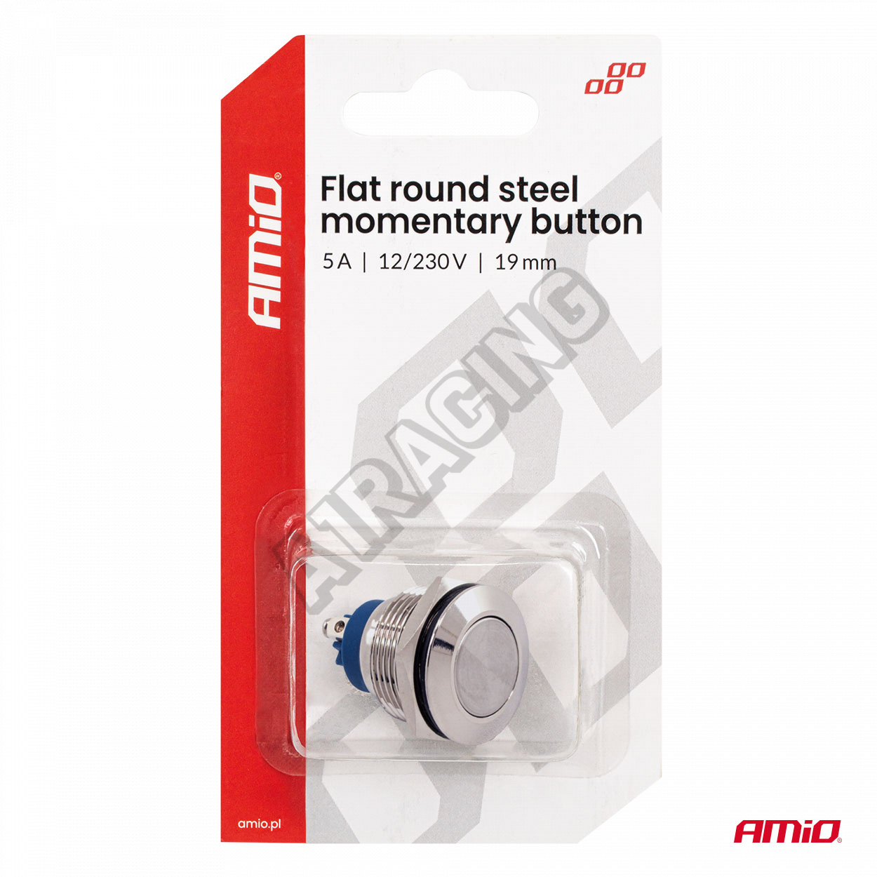 Plochý kulatý ocelový momentový spínač 19mm 5A 12/230V AMIO-04436