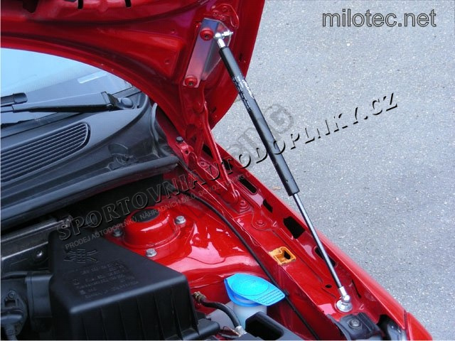 Po odjištění kapoty motoru se díky namontované plynové vzpěře Milotec kapota daleko snáze vyzdvihne a po vyzvednutí sama drží bez dalšího zajištění.