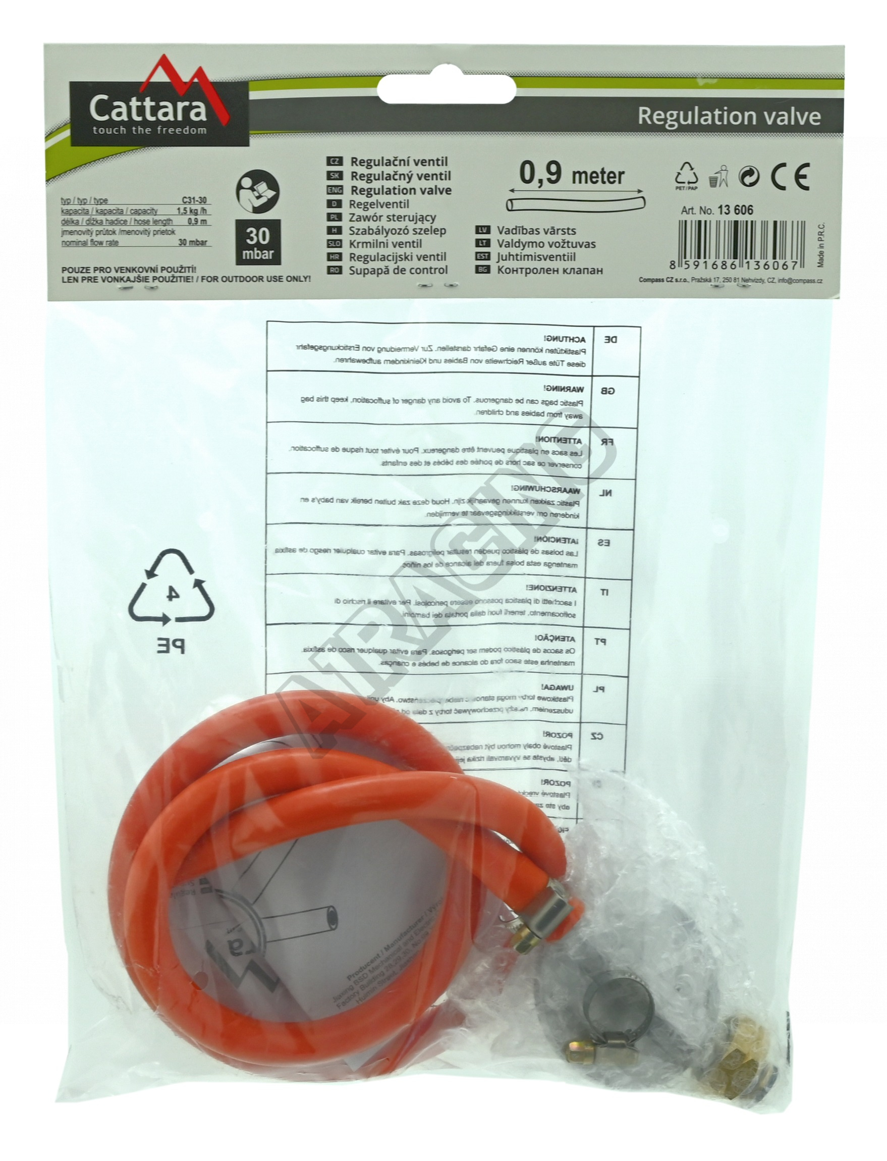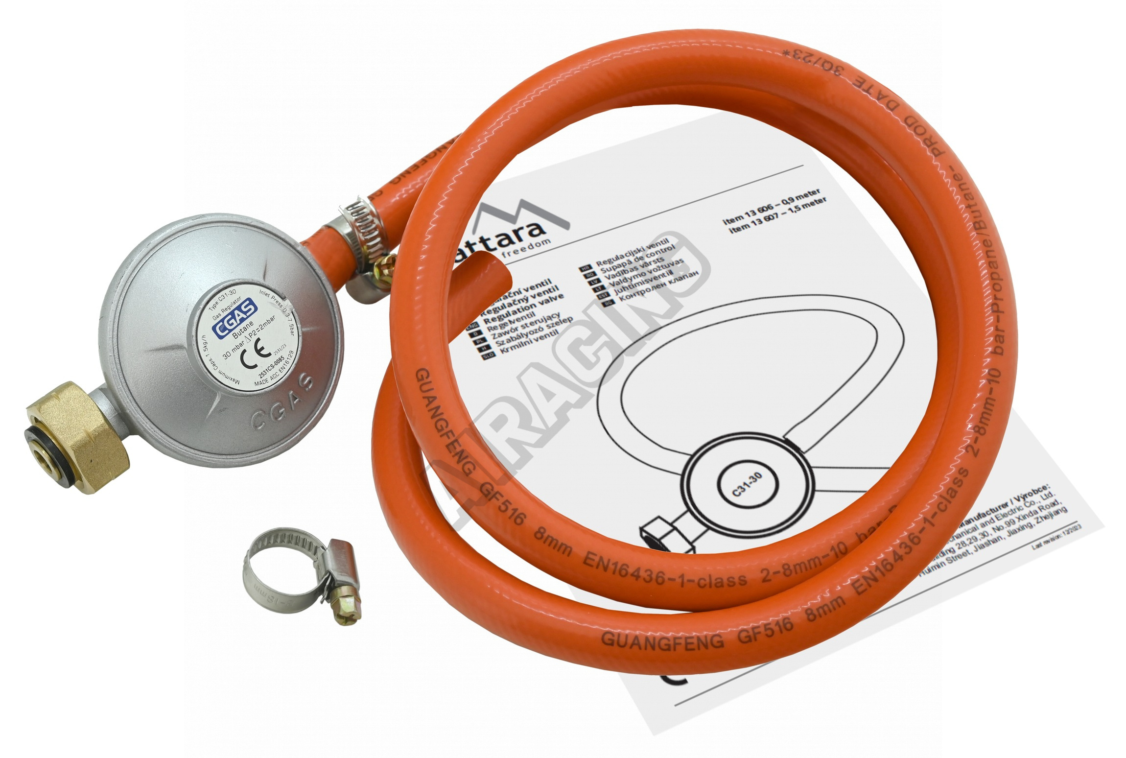 Plynový regulátor tlaku 30mbar EN16129 - sada 0,9m hadice