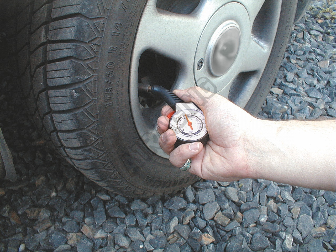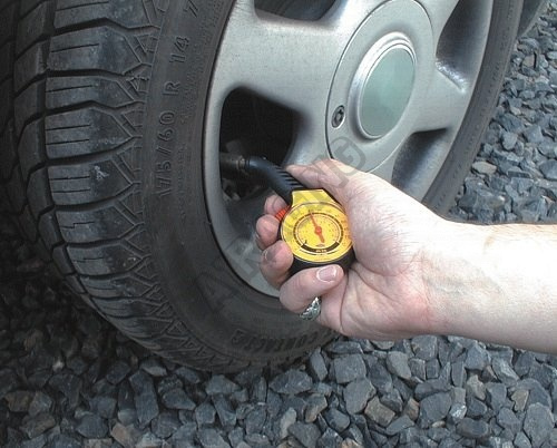 Měřič tlaku v pneumatikách, rozsah až 0,5 - 5 Bar.