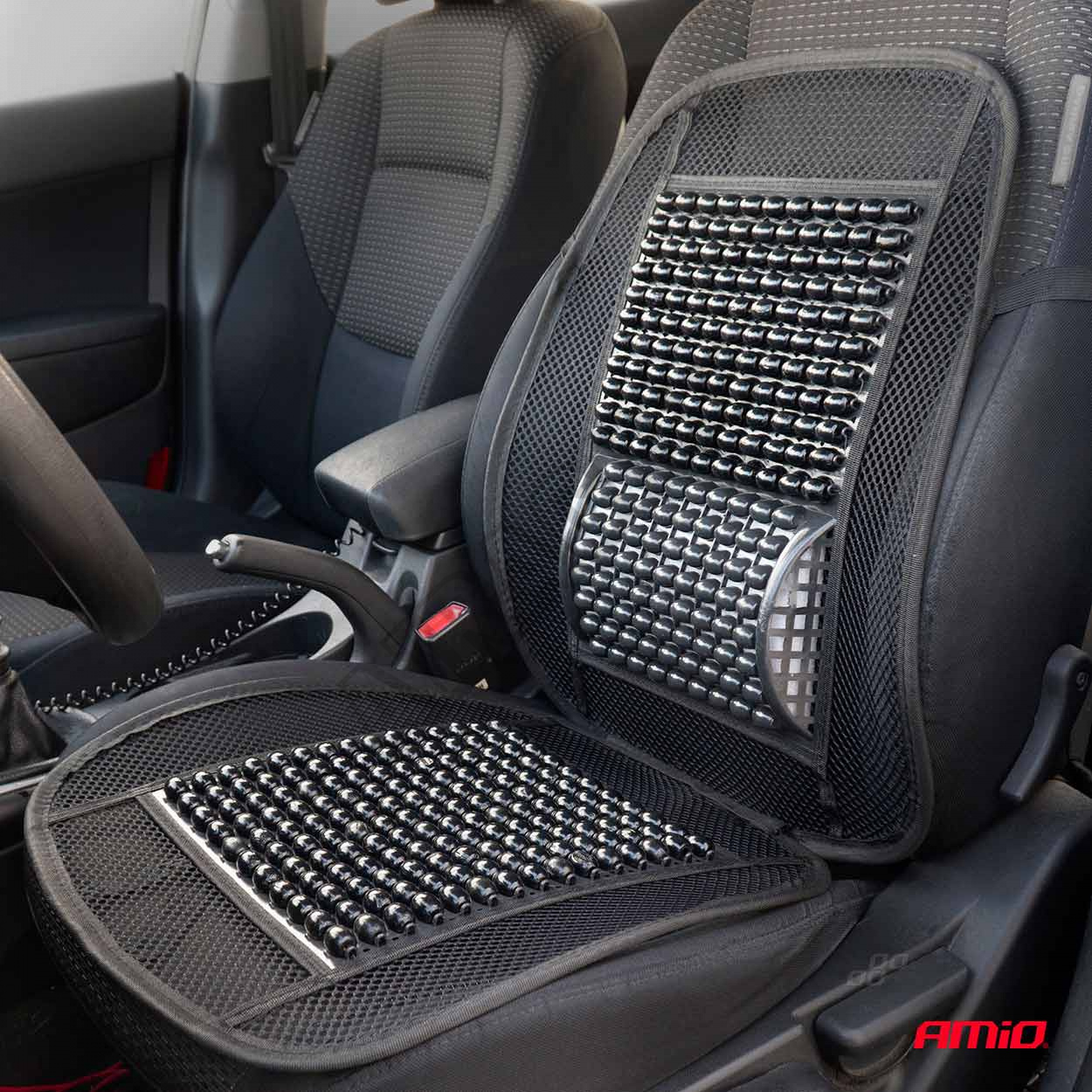 Ventilovaná podložka na sedadlo s korálky a opěrkou zad do auta AMIO-03645