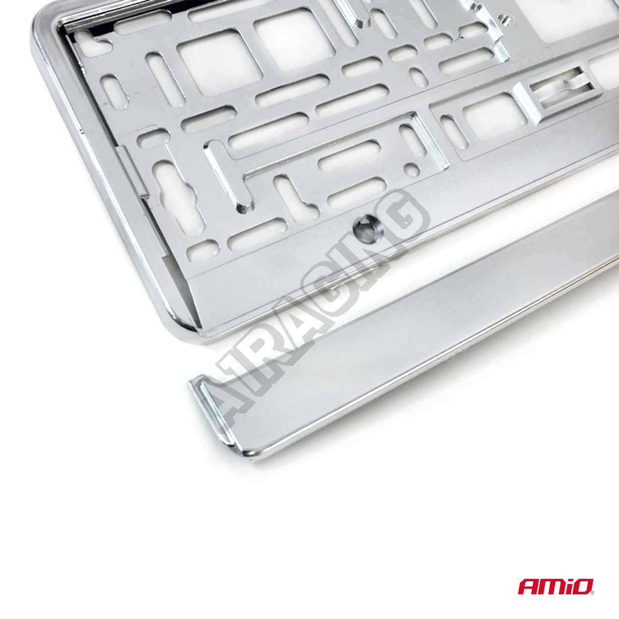 Plastová podložka pod státní poznávací značku nebo tabulku registrační značky, otvory pro univerzální montáž, povrch CHROM.