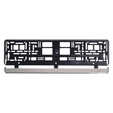 Plastová podložka pod státní poznávací značku nebo tabulku registrační značky, otvory pro univerzální montáž. Povrch černá v kombinaci se spodní lištou Chrom.