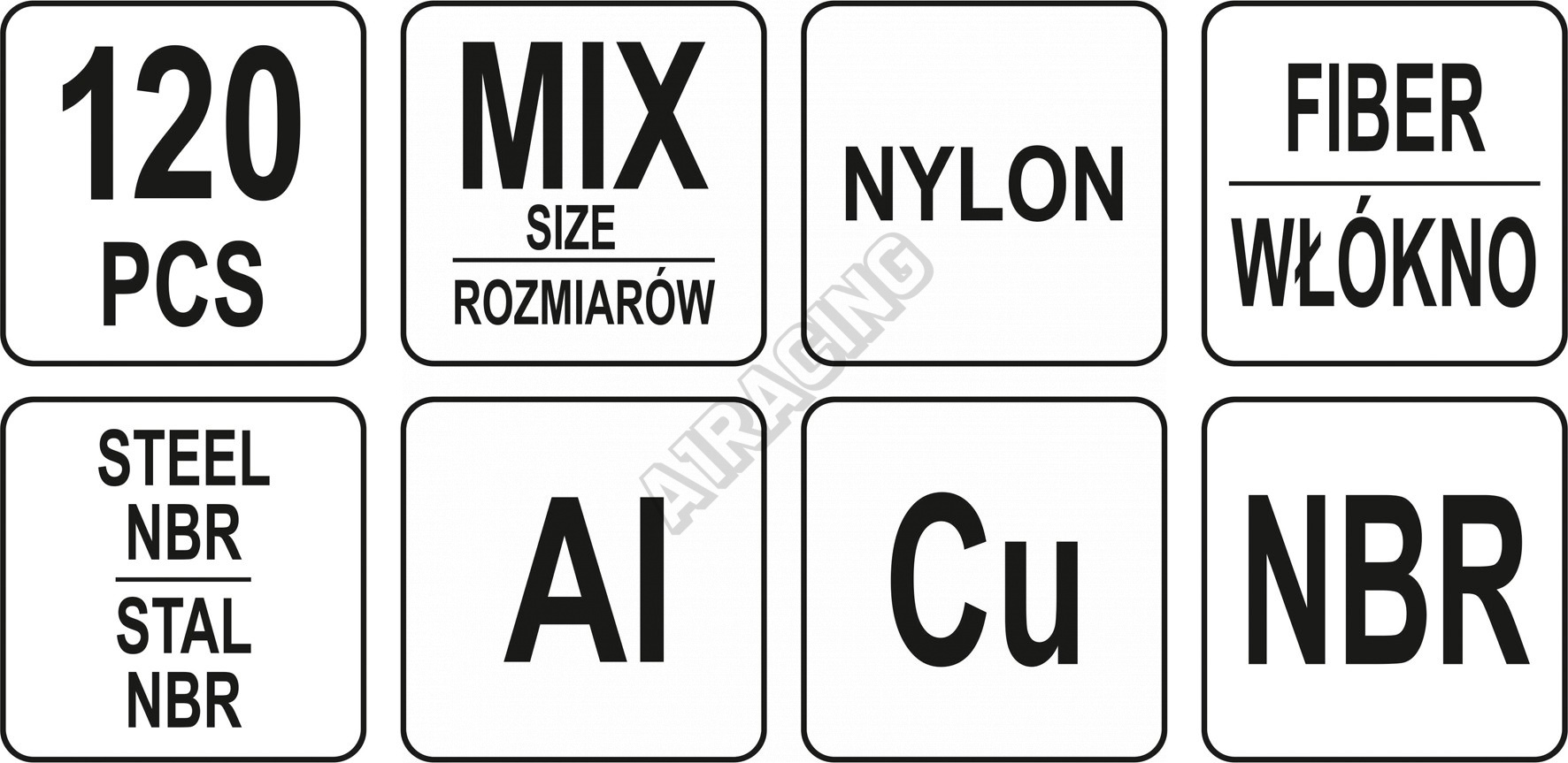 Podložky (Alu, Cu, Nylon, NBR, FIBER) sada 120ks