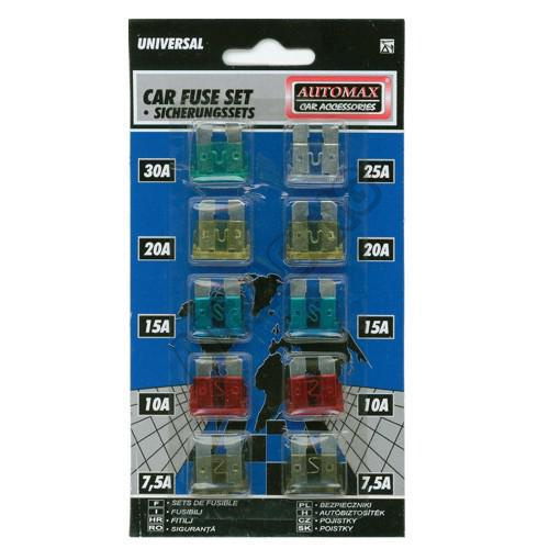 Pojistky nožové 10ks (2x7,5A, 2x10A, 1x15A, 2x20A, 2x25A, 1x30A.)