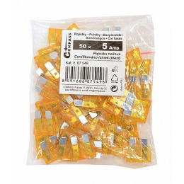 Pojistky nožové 5 Amp polybag 50ks Nožové pojistky do automobilu (6 - 24V), certifikováno (materiál