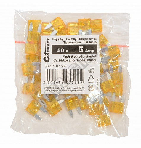 Pojistky nožové MINI 5 Amp polybag 50ks56 Kč