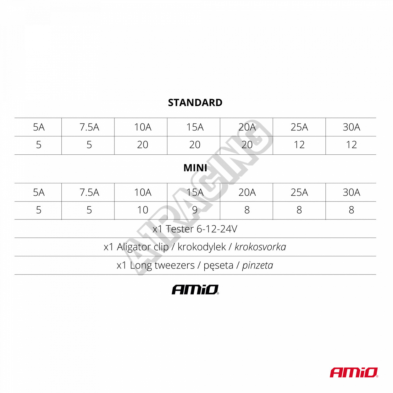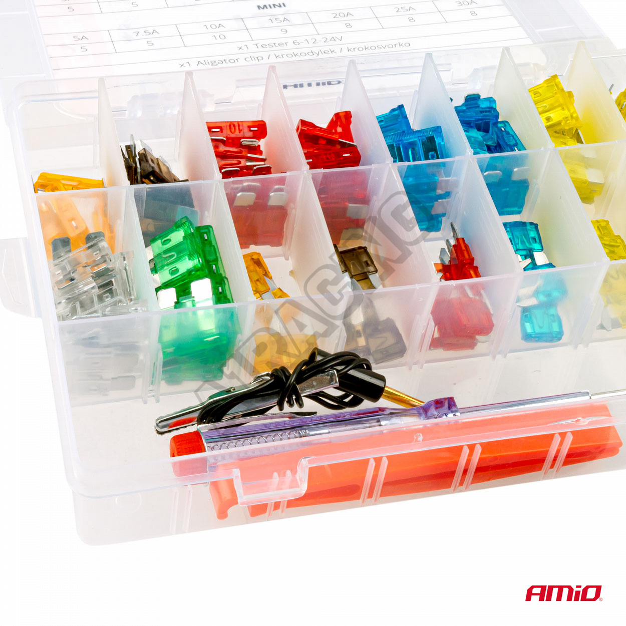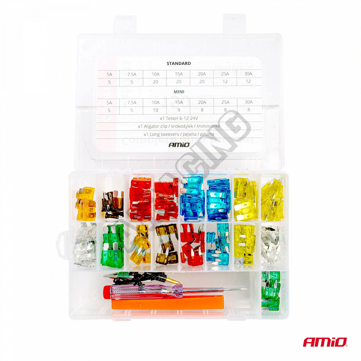 Obsahuje pojistky typu mini a standard vyrobené z vysoce kvalitní zinkové slitiny s testerem napětí v rozsahu 6-24V a kleštěmi.