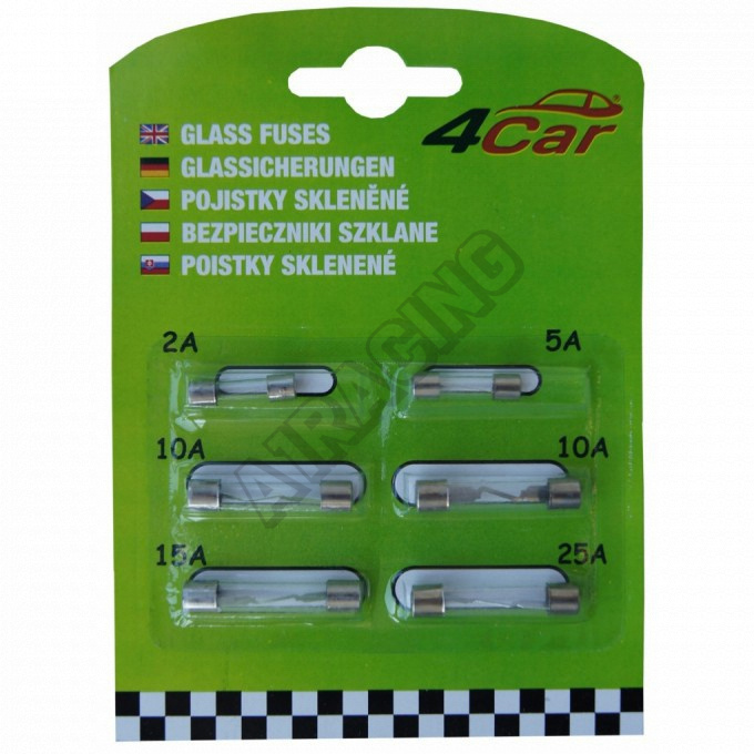 Pojistky skleněné-6ks v balení Pojistky skleněné: 1x2A, 1x10A, 1x15A, 1x5A, 1x10A, 1x25.