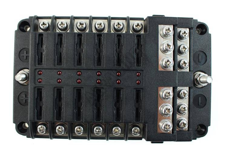 Pojistná skříň na 12 pojistek Praktická pojistná skříň na 12V s průhledným krytem. Počet držáků po