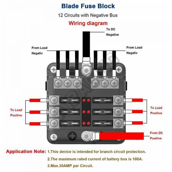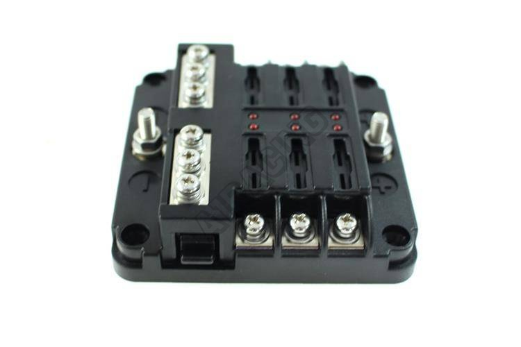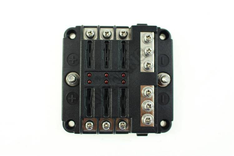 Počet 19mm univerzálních nožových pojistkových objímek: 6 ks. Montáž na šrouby 6 mm. Průhledné víko se západkami drží velmi pevně Pevně konstruované Navíc hromadný blok Max. pracovní napětí 32V Max. zátěž na jeden okruh 30A maximální pracovní zatížení na bloku 100A Hmotnost 0,34 KG Typ pojistky: Unival, typ desky 19 mm