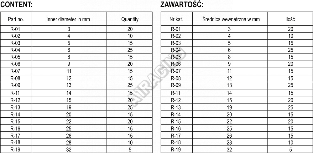 - 25 x vnitřní pojistný kroužek R-13 (19 mm)