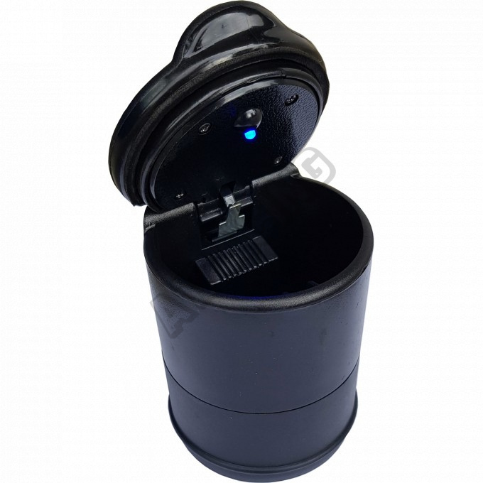 Tento popelnik je o výšce 9,8 cm a průměru 7 cm.Atraktivní design, špičkové provedení a ideální rozměry umožňují pohodlné umístění np. ve středovém panelu Vašeho vozidla. Uvnitř popelníku jsou dvojité otvory pro odložení zapálené cigarety.Uzavřením víka dojde k uhašení nedopalku. Udržuje zápach uvnitř popelníku a tím účinně snižuje škodlivost pasivního kouření.Podsvětlení LED diodou, která se rozsvítí po otevření víčka popelníku. Součástí balení je prezentační baterie CR2016 (běžné v prodeji), kterou, pokud je to nutné, vyměňte za novou, po zakoupení výrobku. Pro výměnu baterie odšroubujte spodní část vika. Jednoduchá údržba, nehořlavý plast.