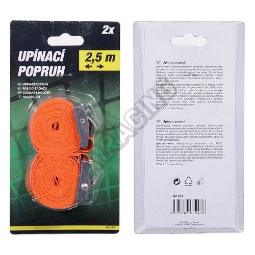 Praktická sada upínacích popruhů, která najde široké uplatnění při upevňování předmětů. Obsahuje 2x popruh se sponou.